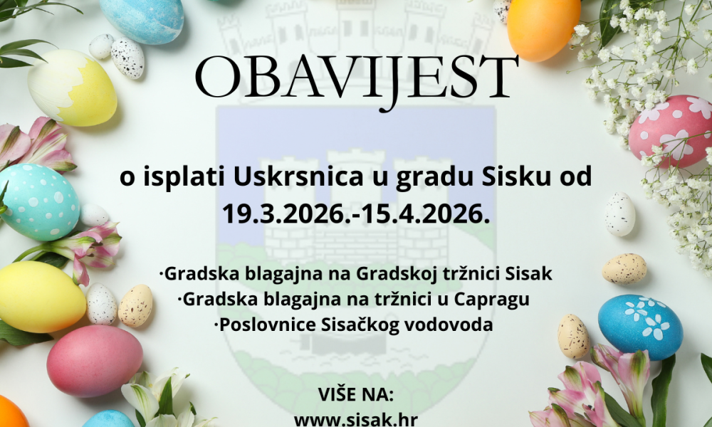 Grad Sisak objavio je da od sutra, 19. ožujka 2026. godine započinje isplata uskrsnica za svoje građane. Odluku o isplati donio je gradonačelnik Domagoj Orlić. Isplata...