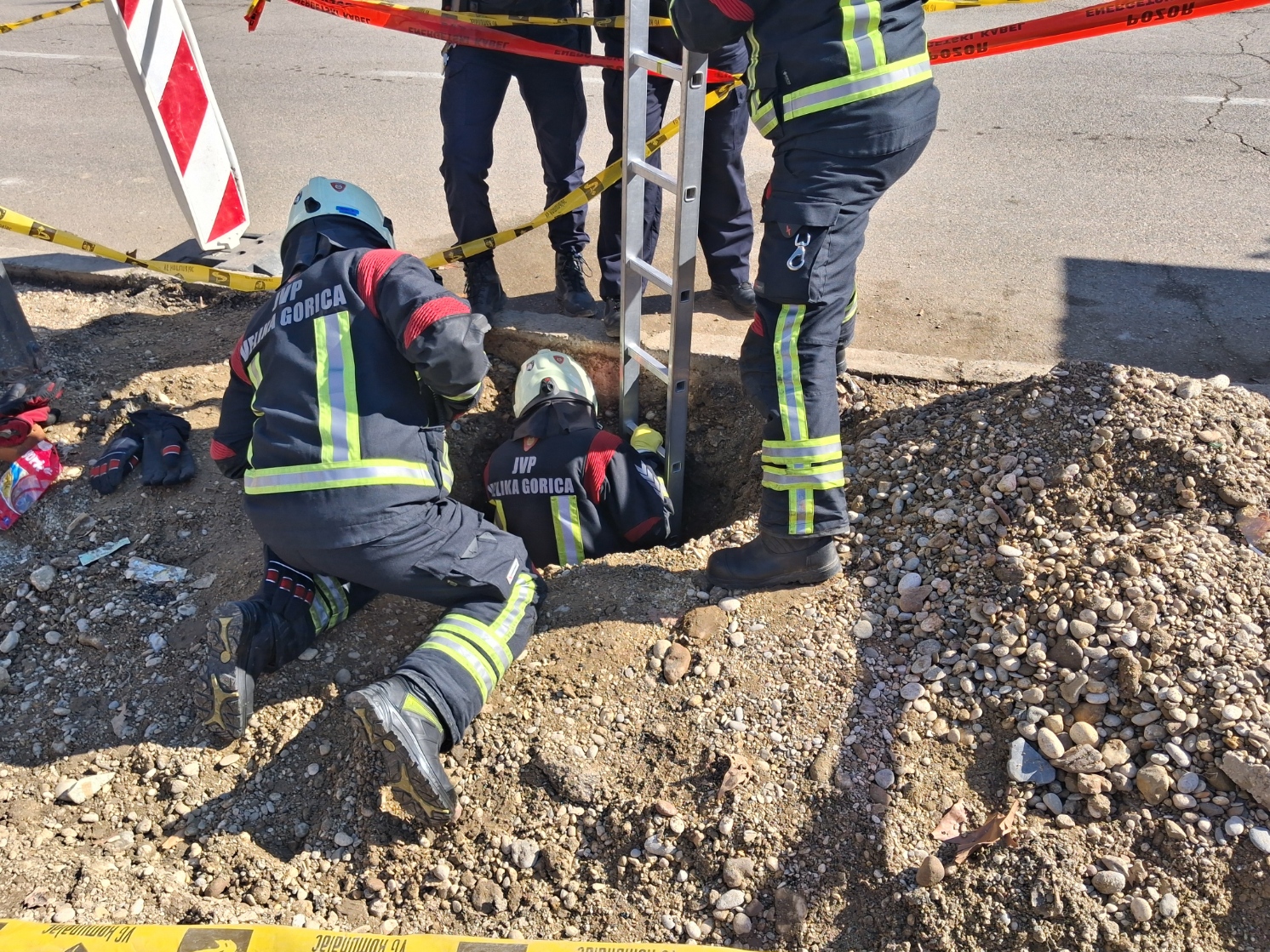 Na teren su izašli i vatrogasci koji su pokušali iz rupe izvući predmete koje je dječak izgubio prilikom pada, no zbog dubine i uskog prostora u tome nisu uspjeli. Prema njihovim riječima, ispod oštećene cijevi nalazi se još dodatni prostor od oko metar i pol, zbog čega je predmete bilo nemoguće dohvatiti.