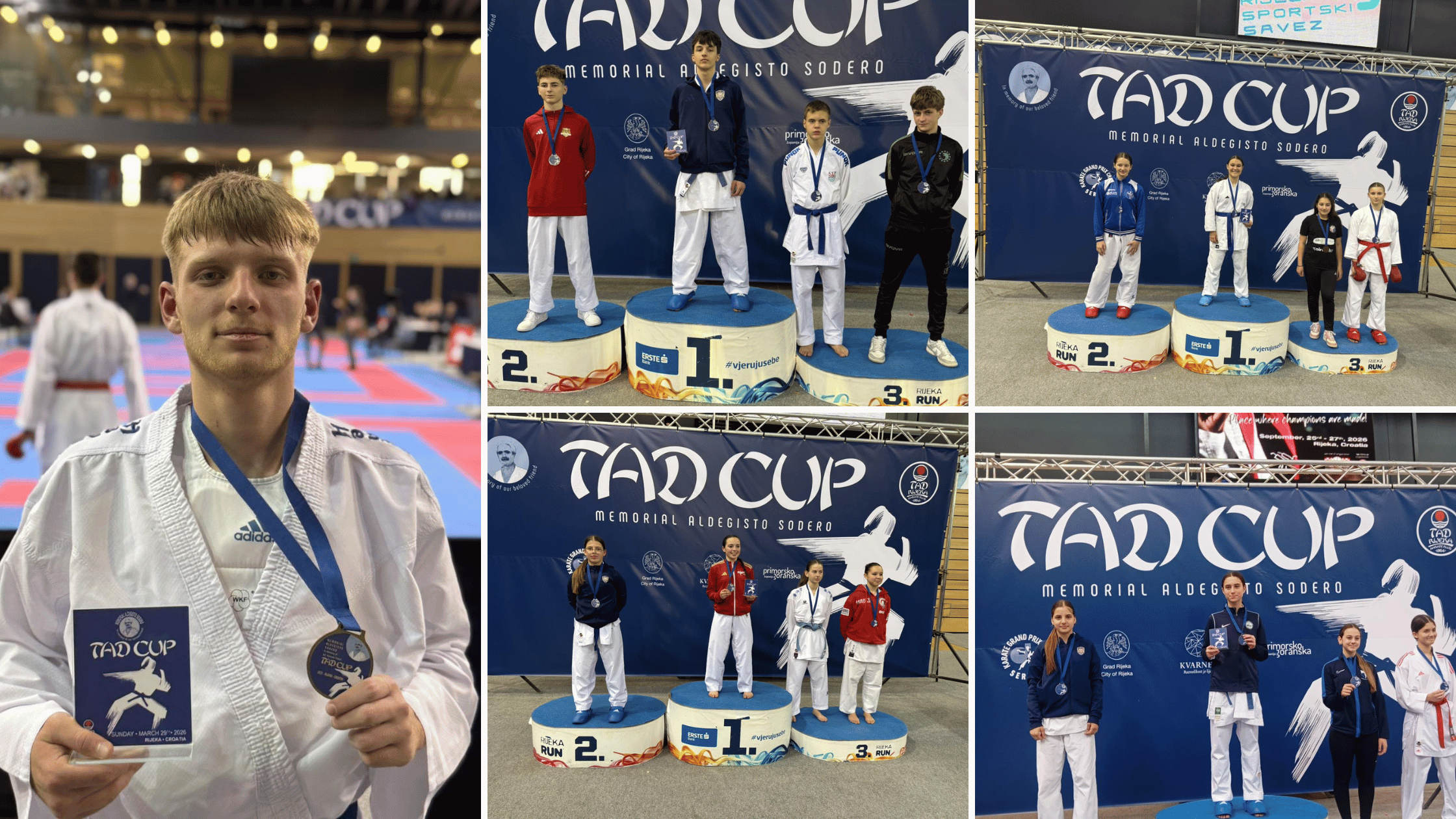 Karate klub Velika Gorica ostvario je odličan rezultat na međunarodnom turniru TAD CUP, održanom u nedjelju 29. ožujka u Rijeci, u sportskoj dvorani Zamet. Velikogoričani su nastupili s devet boraca u 14 kategorija, a kući su se vratili s čak osam medalja, tri zlatne, dvije srebrne i tri brončane. Turnir je okupio 637 natjecatelja iz 66 klubova iz Austrije, Slovenije, Italije i Hrvatske.